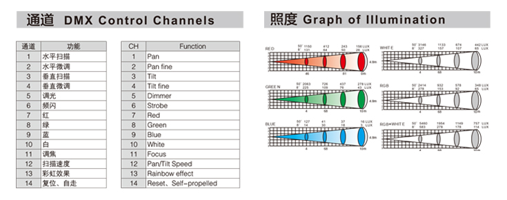 Control: DMX-512, master/slave mode, self-propelled and sound activated