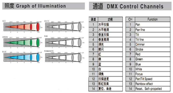 控 制: DMX-512,主從機(jī),自走,聲控